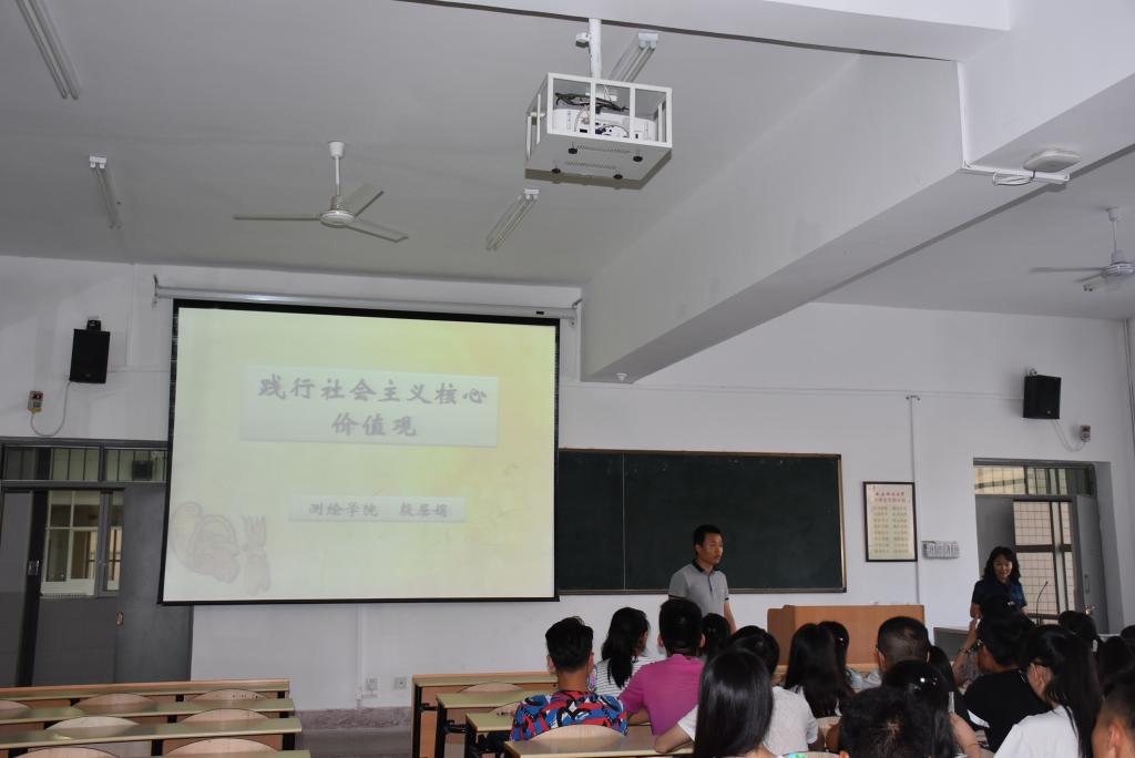 殷屈娟老师带领同学们认真学习了社会主义核心价值观的主要内容及其深刻意义,践行社会主义核心价值观,需要我们不断加强对社会主义核心价值体系的学习,用社会主义核心价值观来引领我们的思想,不断形成精神共识。她希望同学们能以自己的实际行动践行社会主义核心价值观,真正融入到实现伟大中国梦的队伍当中去。