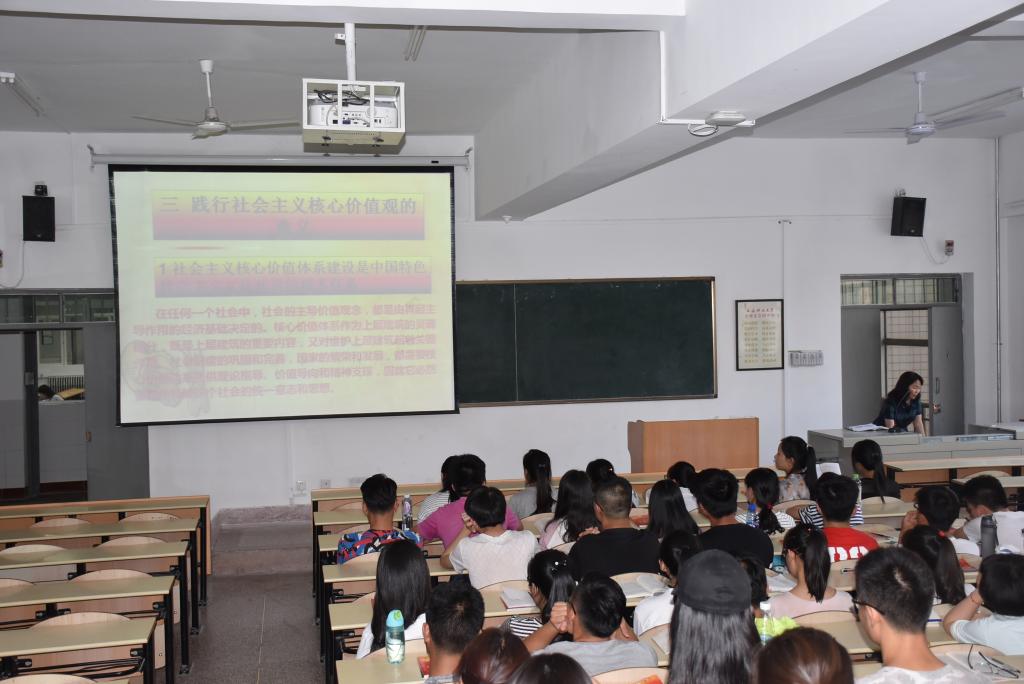 6月1日下午19:00,suncitygroup太阳集团第42期初级党校第三讲在3教207开讲。suncitygroup太阳集团党委书记殷屈娟应邀作了题为《践行社会主义核心价值观》的培训,第42期初级党校65名同学参加了此次培训。