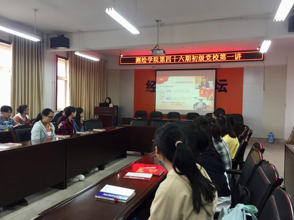 5月7日中午举行第四十六期初级党校第一讲,suncitygroup太阳集团员工党建联络员、2015级辅导员张雷主持了本次培训,suncitygroup太阳集团党委书记殷屈娟书记作了题为《加强党性修养,做合格共产党员》的培训。