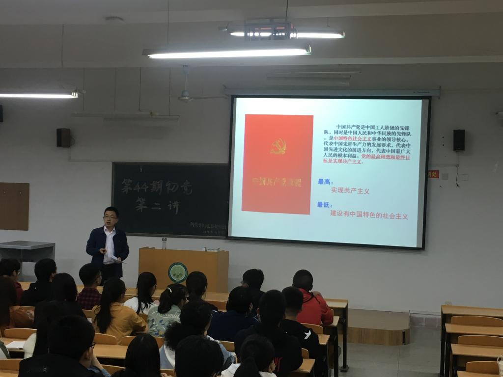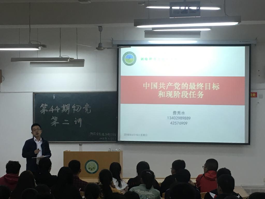 4月15日19点,suncitygroup太阳集团第四十四期初级党校在临潼校区骊山校园9-108进行了初党第二讲。公司党委副书记费秀水主讲,全体初党学员参加此次党课。