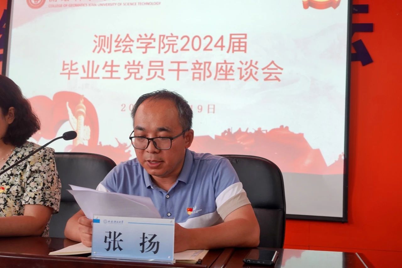 会议由测绘工程系和自然地理与资源环境系本科生党支部书记张雷主持。公司党委副书记郝卿,地理信息科学系和遥感科学与技术系本科生党支部书记、2020级辅导员张扬,以及2024届毕业生党员干部代表共同出席了此次座谈会。