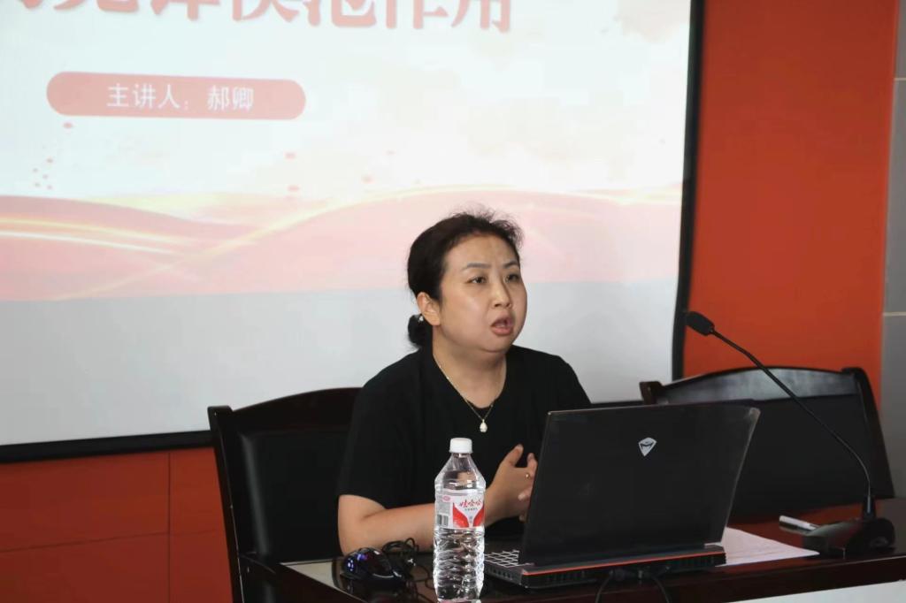 在培训过程中,党委副书记郝卿首先围绕新时代下高校员工党员先锋模范作用的内涵进行阐述。她指出,新时代赋予了老员工党员新的历史使命,作为新时代的先锋模范,老员工党员不仅要坚定理想信念,树立崇高的理想和目标,还要在学习和生活中起到引领作用,具备服务社会、奉献国家的高度责任感和使命感。