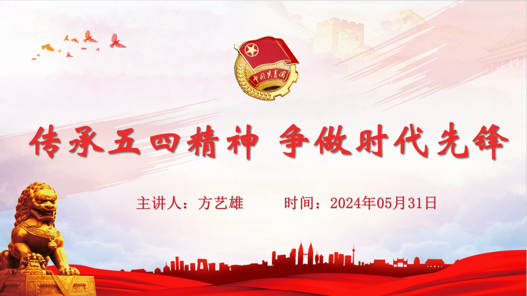 随后,方艺雄从五四运动的各个重要阶段详细阐述了学习五四精神的重要意义,并号召广大青年继承和发扬五四精神,传承“少年应有凌云志,万里长空竞风流”的“报国志”,争做“不畏远航、不惧风浪、不迷航向”的“坚定先锋”;传承“纵有狂风拔地起,我亦乘风破万里”的“进取心”,争做“勤于学习、勇于突破、敢于创新”的“自信先锋”;传承“踏浪前行风正劲,不负韶华争朝夕”的“为民情”,争做“永不止步、永不放弃、永不退缩”的“实干先锋”。