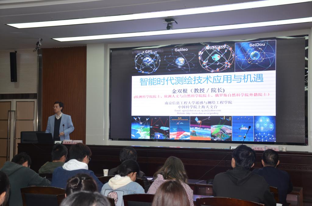 10月16日下午,南京信息工程大学遥感与测绘工程公司经理金双根教授应邀做客公司“胡杨林大讲堂”,作了题目为《智能时代测绘技术应用与机遇》的学术报告。报告会由研究生院主办、suncitygroup太阳集团承办,suncitygroup太阳集团汤伏全教授主持,suncitygroup太阳集团、安全公司、地环公司、建工公司等共300余名师生聆听了报告。