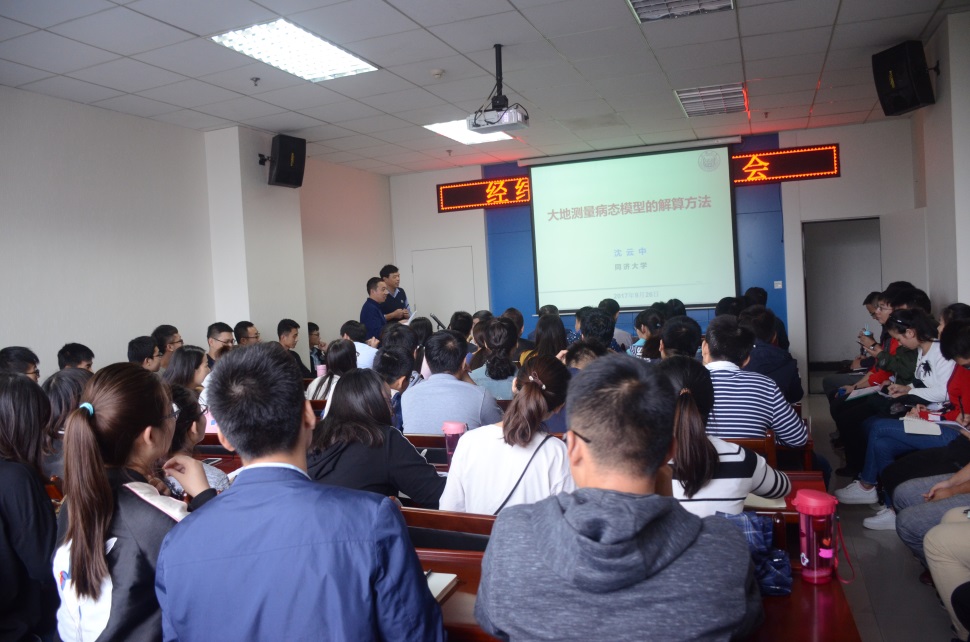 2017年9月26日教育部中国大陆构造环境监测网络联合研究中心同济大学分中心主任沈云中教授及国际著名大地测量学家徐培亮教授莅临suncitygroup太阳集团,分别做了题为“大地测量病态模型的解算方法”与“整体最小二乘”的学术报告。报告会由suncitygroup太阳集团副经理汤伏全教授主持,suncitygroup太阳集团100多名研究生参加了报告会。