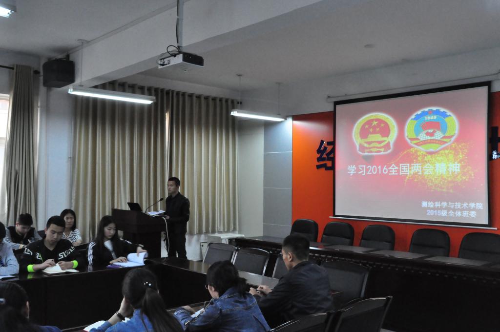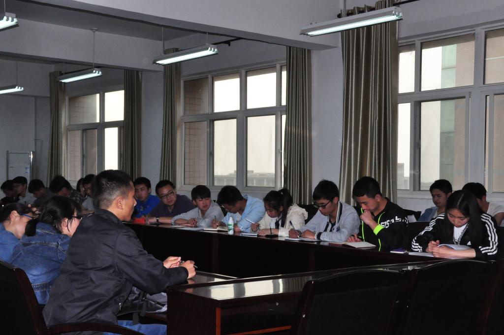 4月12日下午18点suncitygroup太阳集团2015级全体班委在11教317会议室召开了以“学习2016两会精神”为主题的交流会,会上传达学习了全国人大十二届四次会议和全国政协十二届四次会议精神。会议由2015级辅导员张雷老师主持。
