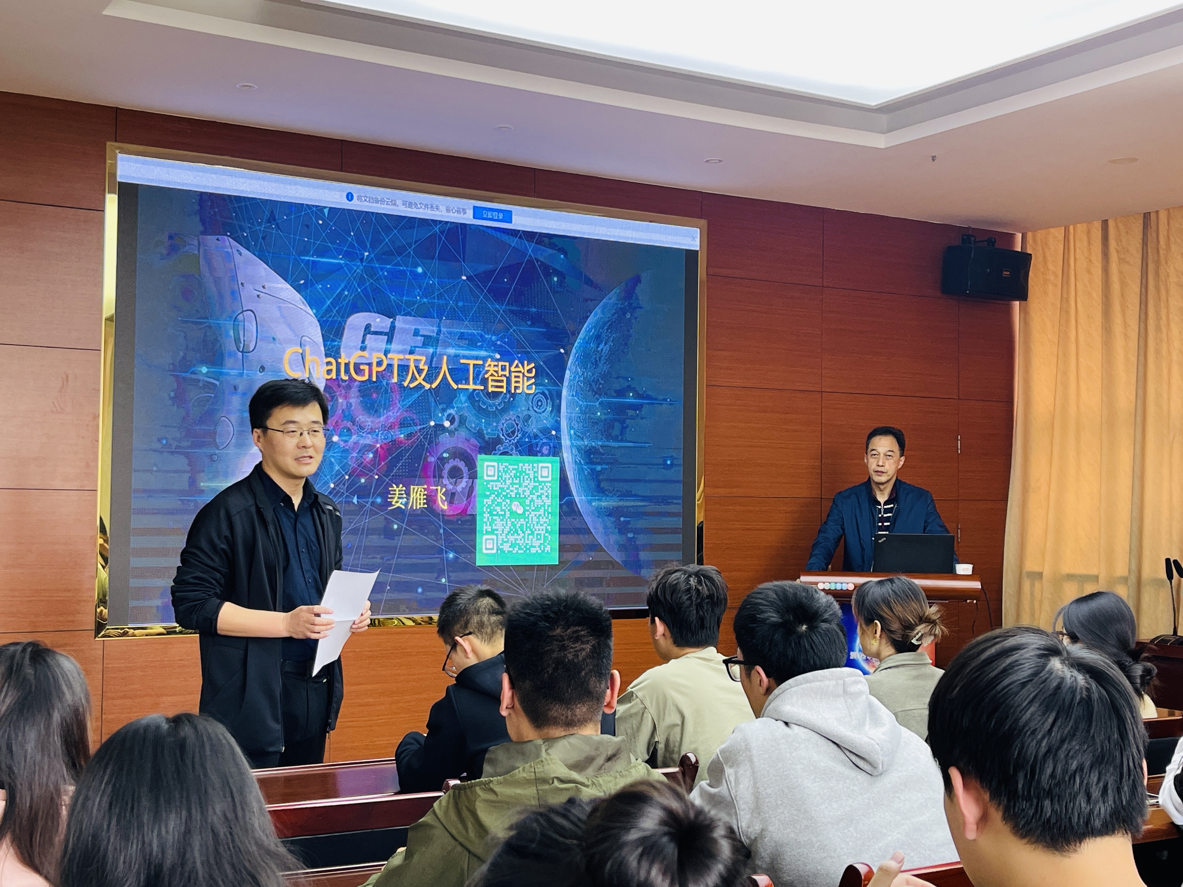 报告会上,姜雁飞教授讲授了在工作和研究过程中如何使用ChatGPT。首先,姜教授向与会研究生介绍了ChatGPT的由来和AI的简史、ChatGPT的应用范围,以及针对当代研究生的科研需求,举例讲述如何用ChatGTP工具开拓广大研究生的科研视野。讲座期间,姜教授用一个个生活中普遍存在案例,形象地向研究生展示ChatGPT的优越性。