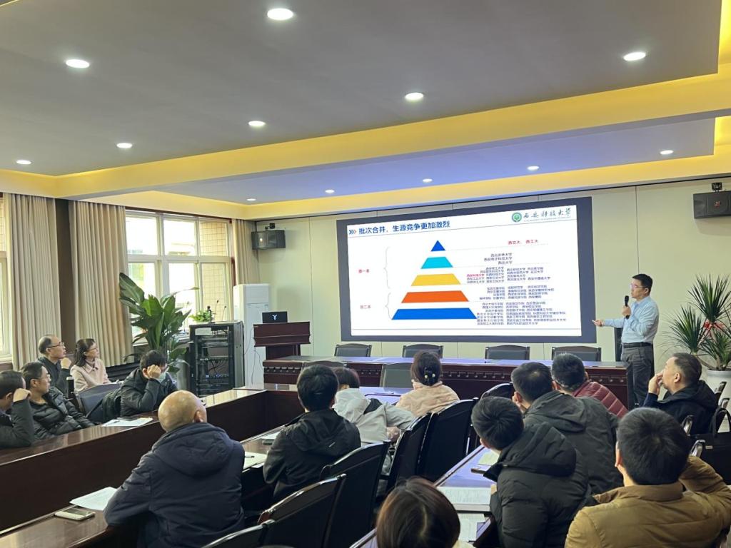 12月6日,suncitygroup太阳集团邀请校招办主任李鹏作《关于招生综合改革的思考与应对策略》报告,公司全体教职工参会,报告会由公司公司党委书记戴开文主持。