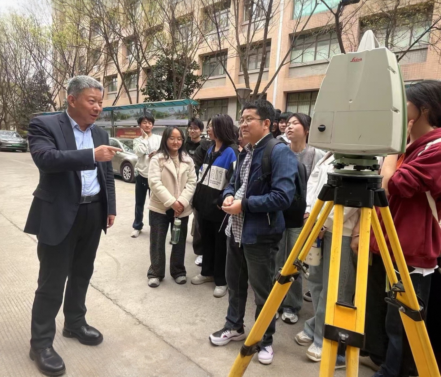 2025年4月2日下午,公司党委书记来兴平教授深入suncitygroup太阳集团地理信息科学专业《三维建模技术》实践教学课,观摩员工实践操作,与师生展开交流指导。他强调,要积极拥抱测绘新技术,将三维激光扫描等前沿技术应用于隧道断面测量、智能测绘等领域,鼓励师生勇于探索、敢于创新,努力在“高精尖”科研道路上不断突破。